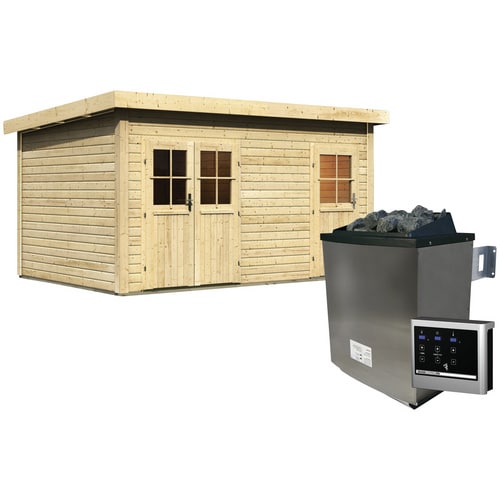 - 9 kW Saunaofen mit externer Steuerung: Das Herzstück der Sauna sorgt für die richtige Temperatur.