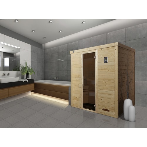 Die WEKA Sauna »Kemi 3« ist mehr als nur eine Sauna – sie ist ein Statement. Mit ihren Abmessungen von 195 x 200 x 145 cm bietet sie ausreichend Platz für Sie und Ihre Liebsten, um gemeinsam die wohltuende Wirkung eines Saunagangs zu genießen. Das warme Braun des Holzes strahlt Behaglichkeit aus und fügt sich harmonisch in jedes Ambiente ein. Ob im Keller, im Gartenhaus oder im großzügigen Badezimmer – die »Kemi 3« wird zum Mittelpunkt Ihrer persönlichen Wellness-Welt.