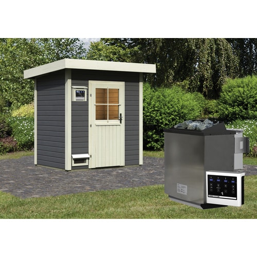 Der integrierte 9 kW Bio-Kombi-Ofen mit externer Steuerung ermöglicht Ihnen individuelle Saunaerlebnisse. Ob klassische finnische Sauna, sanftes Warmluftbad oder wohltuendes Kräuterdampfbad – mit dem WOODFEELING Saunahaus »Jana« haben Sie die Wahl.